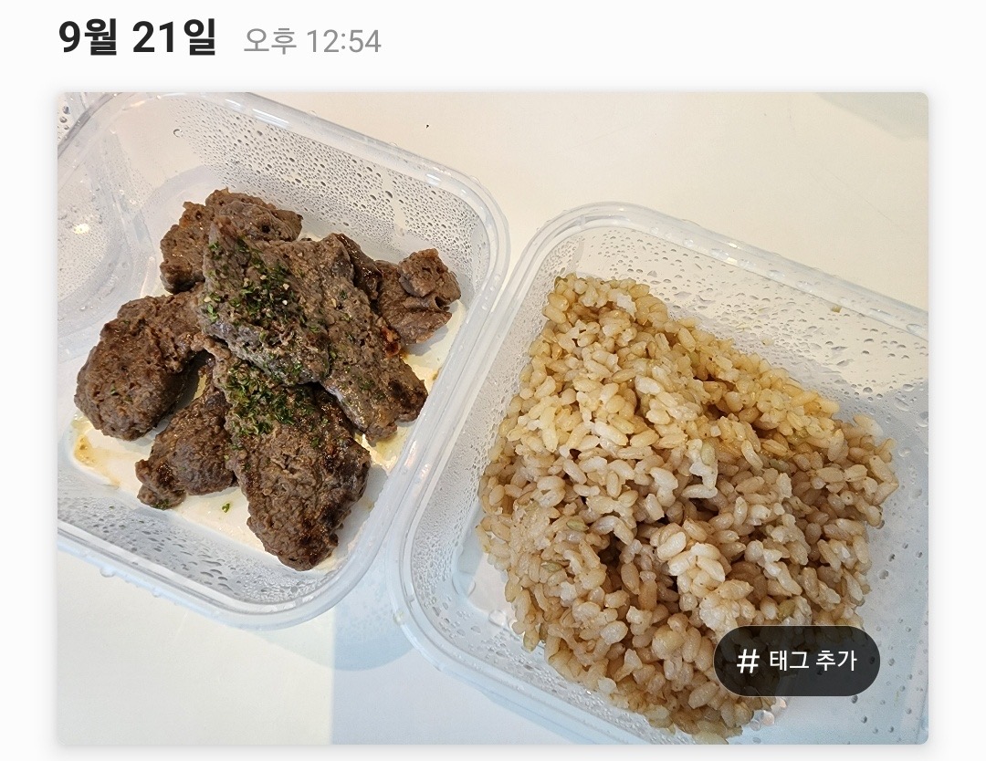 2:50pm 현미밥 200g, 우둔살 스테이크 100g